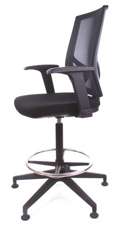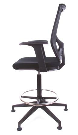 Magasított irodai munkaszék lábtartó gyűrűvel, tappanccsal, fekete szövetborítás, hálós háttámla, MAYAH "Sky"