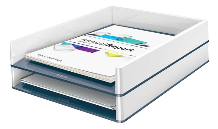 - szembetűnő, prémium minőségű, kettős színhatású Leitz irattálca fényes felülettel