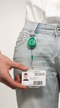 Azonosítókártya-tartó, kihúzható, karabineres, DURABLE "STYLE, zöld