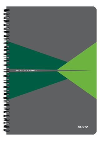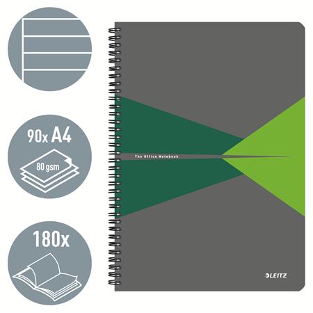 Spirálfüzet, A4, vonalas, 90 lap, PP borító, LEITZ "Office", szürke-zöld