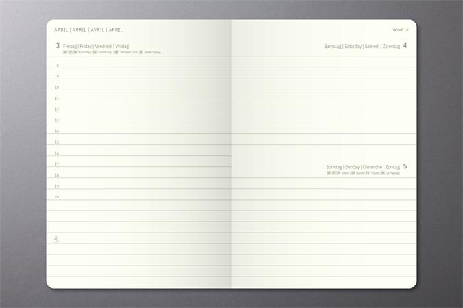 -napi beosztás (1 oldalon 1 nap; szombat/vasárnap egy oldalon)