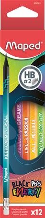 KezdőlapIrodaszerekÍrószerekGrafit- és színes ceruzákGrafitceruza radírral, HB, háromszögletű, MAPED "Black`Peps Energy", 6 különböző minta