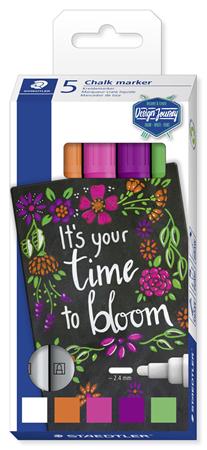 Krétamarker készlet, 2,4 mm, kúpos, STAEDTLER "Lumocolor® chalk marker 344", 5 különböző szín