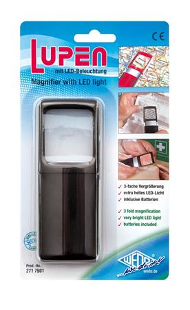 Nagyító, 35x38 mm, LED fénnyel, WEDO, fekete
