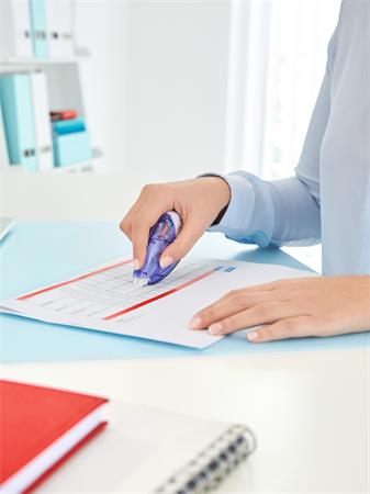 A tesa® újratölthető hibajavító roller környezetbarát és könnyen használható.