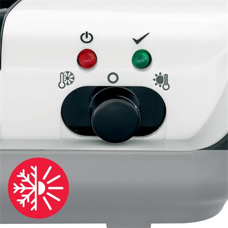 LED-lámpa, amely jelzi a készülék bekapcsolt (piros) és laminálásra kész állapotát (kék)