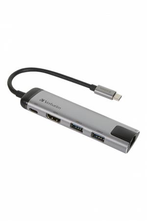USB elosztó-HUB, USB-C/USB 3.0/HDMI/Ethernet, VERBATIM