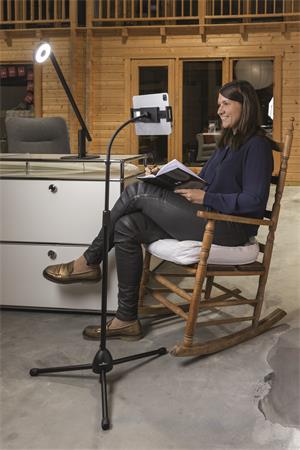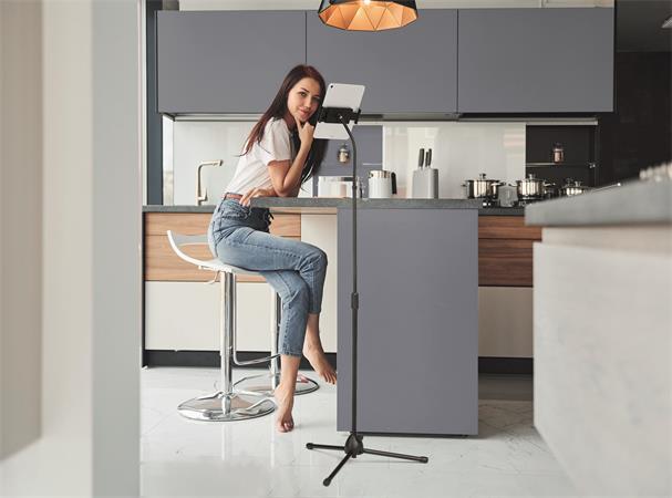 Padlóállvány tablet- és mobiltelefon-tartóval, rugalmas karral és gömbcsuklóval táblagépekhez és okostelefonokhoz, 13" méretig.