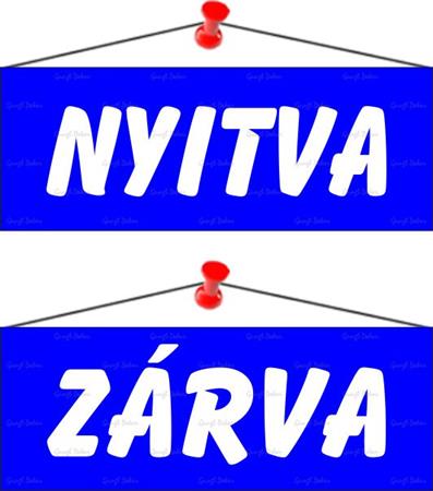 Információs tábla, 22x8,5 cm, kétoldalas, "Nyitva/Zárva", kék