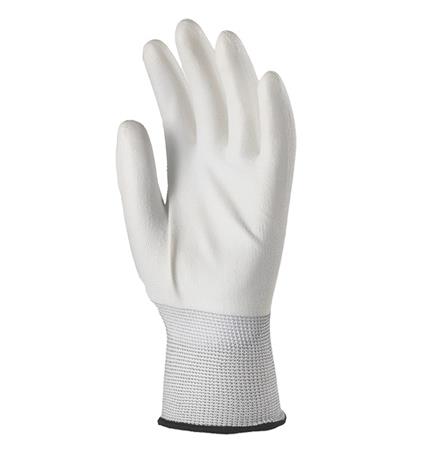 Tenyéren fehér poliuretánnal mártott. Fehér precíziós kesztyű